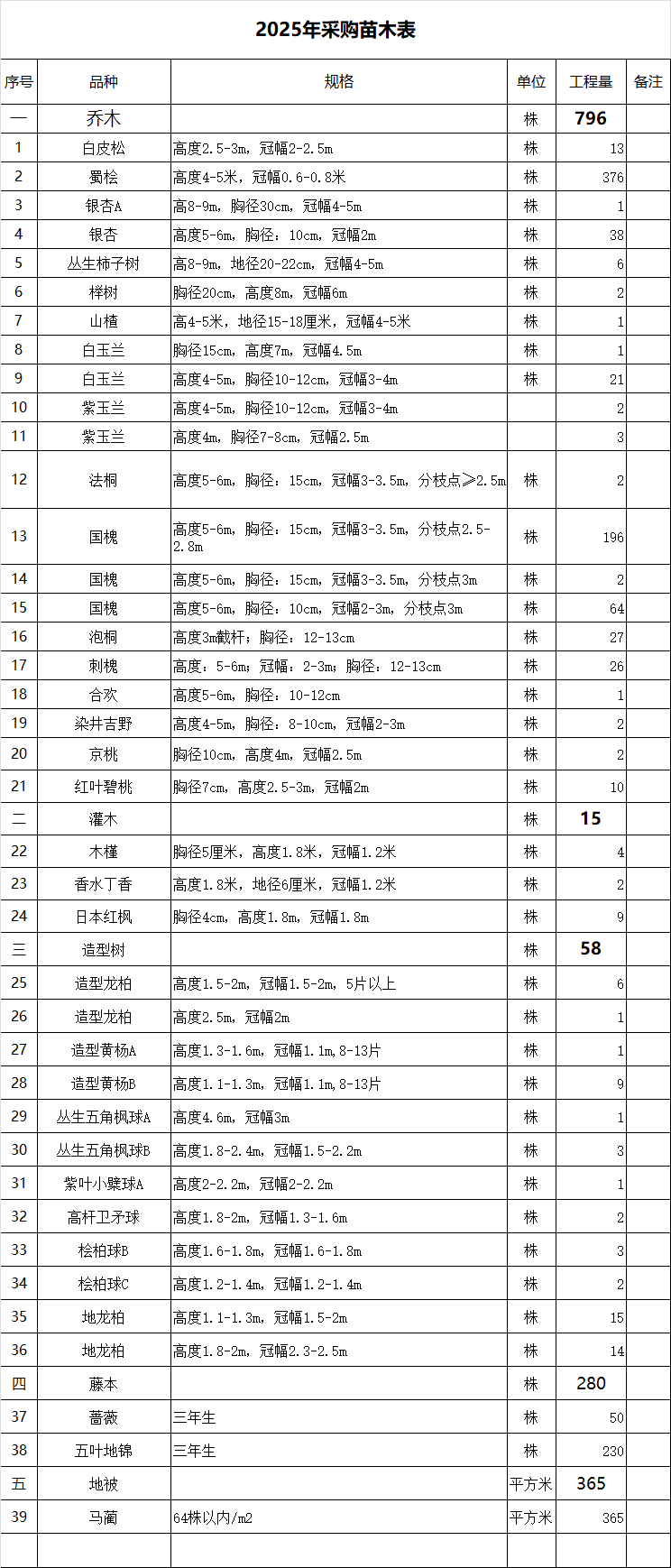 您當前位置: 首頁 > 苗木求購 > 綠化苗木 > 喬灌木 > 苗木清單(白皮松、蜀檜、銀杏、叢生柿子樹、櫸樹、山楂、白玉蘭、紫玉蘭、法桐、國槐、泡桐、刺槐、合歡、染井吉野等) | ![]() |