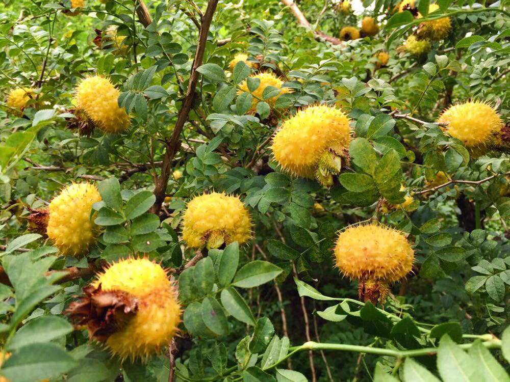 詳細刺梨的別稱:刺梨,拉丁名:Rosa roxburghii。刺梨落葉或半常綠小灌木,高達1.5米。分枝多而密,樹皮成片剝落,小枝常有成對皮刺。羽狀復葉,小葉9~15枚,橢圓形或長橢圓形,長1.2厘米,邊緣有細銳鋸齒。5~6月開花,花單生或2朵并生枝端,粉紅色,直徑4~6厘米,花瓣先端凹入,花柄,萼筒和萼片外密生小的皮刺。9月果熟,果實扁球形,黃色,有梨香味,外面密生小皮刺。。刺梨喜陽,稍耐陰。耐寒性稍弱。適應性強,對土壤的要求不高。