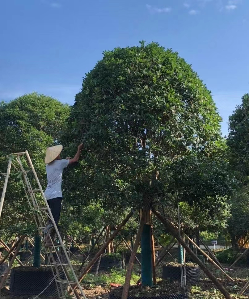 詳細桂花的別稱:桂花,拉丁名:Osmanthus fragrans。桂花常綠闊葉喬木,高可達15米。因分枝性強且分枝點低,也常呈灌木狀。樹皮灰褐色或灰白色,有時顯出皮孔。單葉對生,革質,光滑,長橢圓形或橢圓狀披針形,先端尖或漸尖,基部楔形,深綠色,全緣或上半部疏生鋸齒,葉緣波狀。芽疊生。花期9~10月,花簇生于葉腋,聚傘花序,具濃香,花色因品種而異,其中金桂花深黃色;銀桂花黃白色;丹桂花橙色或橘紅色,香味較淡;四季桂花檸檬黃或淡黃色,植株較矮而分枝多,一年中能多次開花,但花的香味更淡。核果紫黑色,翌年4月果熟。。桂花喜光,稍耐陰,但只有全日照時才會枝葉茂盛,著花繁密。喜溫暖,也具有一定的抗寒能力。萌芽力強,耐修剪。對土壤的要求不嚴,除澇地外都能栽植,以肥沃、濕潤和排水良好的中性或微酸性土壤為宜。喜肥,但忌施人糞尿。對有毒氣體有一定的吸收能力,適生于清潔環境,在空氣污染嚴重或灰塵過多處常不開花。