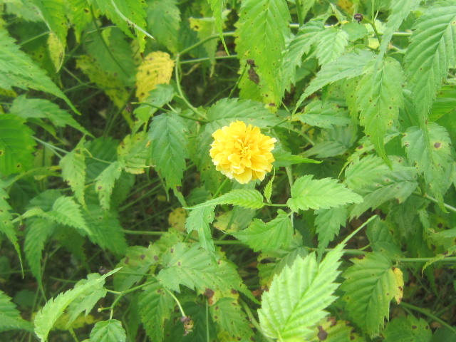 落葉叢生灌木,高1.5米左右。小枝綠色,有縱棱。單葉互生,卵形或卵狀披針形,先端漸尖,基部截形或近圓形,邊緣具重鋸齒,葉面鮮綠色,有托葉。4~5月開金黃色花,單生于側(cè)枝,花瓣五。瘦果褐黑色,8月果熟。栽培變種有:重瓣棣棠(cv.pleniflora),花重瓣,不結(jié)實(shí)。